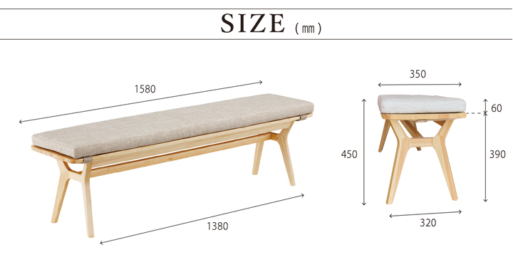 赤松H型ダイニングベンチ