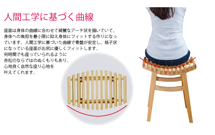 シンプルだけど美しい曲線がどんな空間にも合うのでダイニング、家事室、ドレッサー、踏み台まで使い方様々。置いてあるだけで存在感があるのでお部屋のインテリアにも。