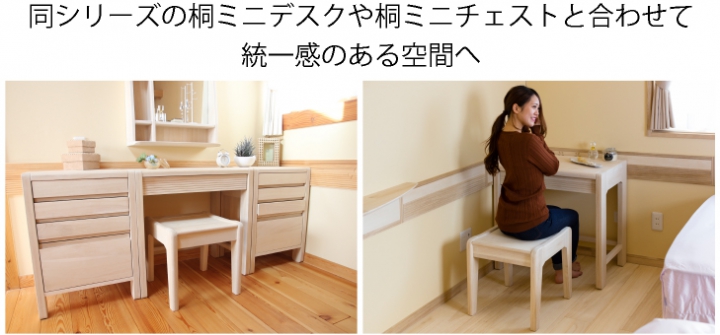 その優しい桐素材の特徴を活かすため、柔らかな曲線で面取りをしたデザインがインテリアとしてもホッとするような優しい印象を与えてくれます。