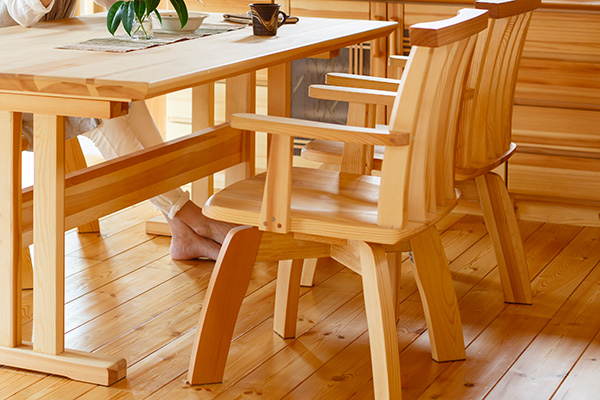座面の張替えを気にすることなく、時間と共に飴色に深みを増していく赤松を楽しみながら永く付き合っていけます。