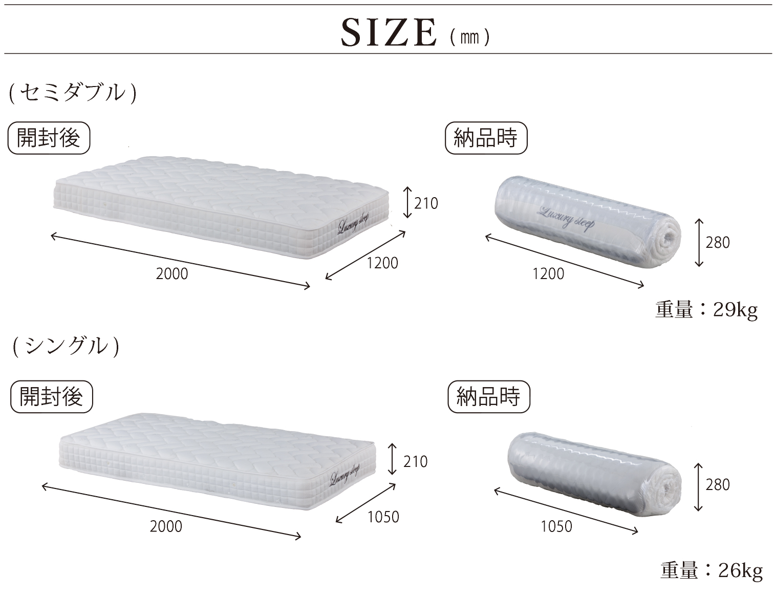 Luxury Sleep ロールマットレス