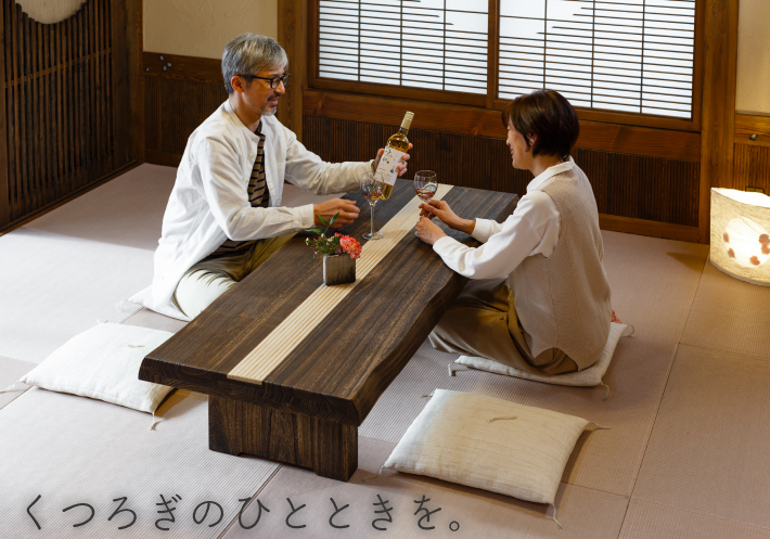 日本人の心に宿る「座」の歴史。畳にお座りしてすごすのが当たり前の家族の団欒風景だったのは、そう遠い昔のことではありません。高級ソファにもこだわりのダイニングセットにも作ることのできない懐かしくて心地よい時間を1台の座卓がうみだしてくれます。素朴な質感に仕上げた桐の存在感は別格。伝統と歴史に裏付けされた格調高い長座卓は、和室だけでなく、ウッドデッキや畳コーナーにもおすすめ。ゲストを招いてくつろぎの時間を過ごしたくなる自慢の空間の完成です。