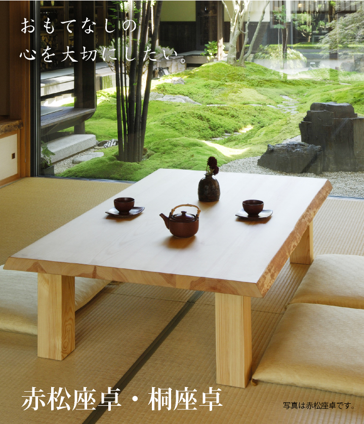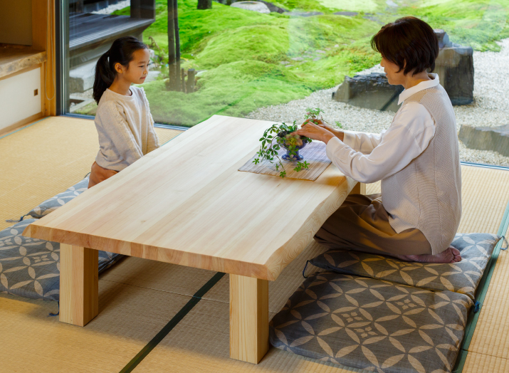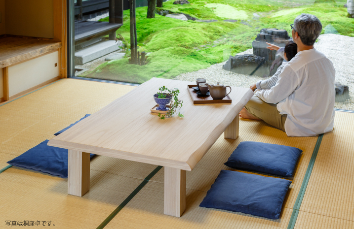 日本人の心に宿る「座」の歴史。畳にお座りしてすごすのが当たり前の家族の団欒風景だったのは、そう遠い昔のことではありません。高級ソファにもこだわりのダイニングセットにも作ることのできない懐かしくて心地よい時間を1台の座卓がうみだしてくれます。
