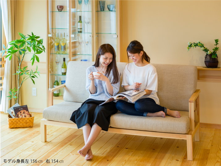 足を伸ばす、横座りする、お昼寝する. . .リラックスしたい場所だから楽々すごせる奥行き55㎝を確保。