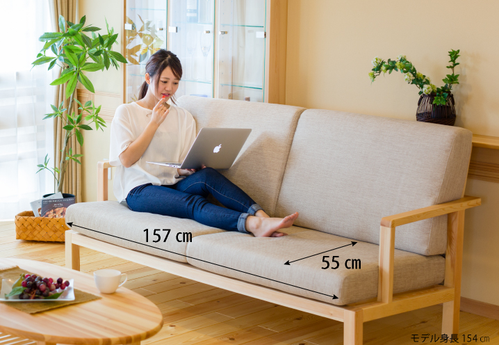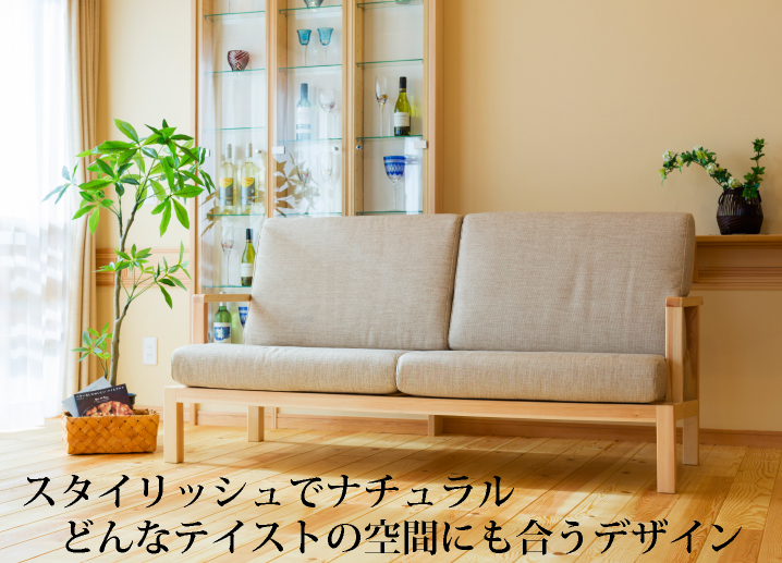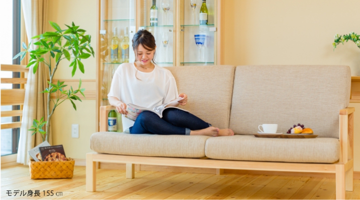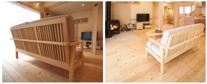背もたれは背中をしっかり受け止めてくれるように高さ53㎝にしました。座面も背もたれもやわらかすぎないウレタンを使用。長時間座っていても疲れません。